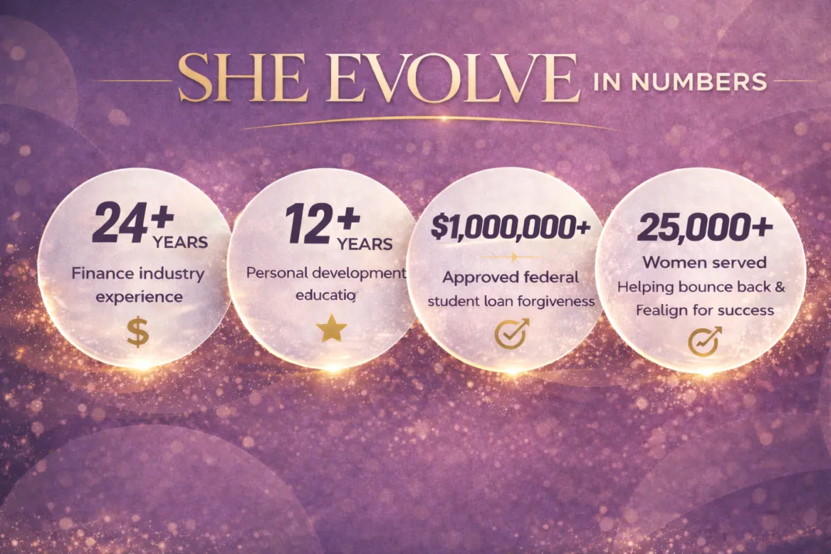 Many women are carrying the weight of student loans, inconsistent finances, emotional burnout, and the pressure to hold everything together. She Evolve was created to offer a different path. Through faith-aligned education, coaching, and practical tools, we help women move from confusion to clarity, from financial stress to structure, and from survival mode to sustainable growth.